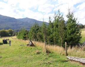 Tramo 1: Tres hileras de 25 m. de largo por 5m. ancho (Coihue; Pino oregón; Pino ponderosa)